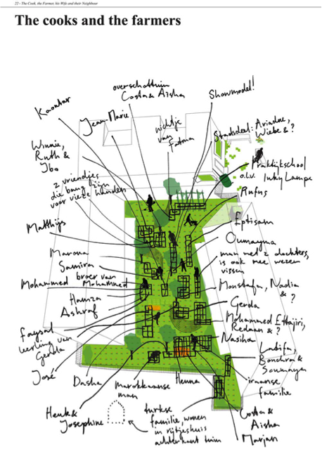 Este barrio ubicado al oeste de Amsterdam se caracteriza por ser un complejo modernista muy bien urbanizado que en el pasado fue utilizado como campos de cultivos, el cual se fue poblando por inmigrantes procedentes de Turquía y Marruecos principalmente, quienes al no contar con empleo mantuvieron una postura desinteresada y aséptica con la zona. La huerta ayudo a crear lazos de conexión y pertenencia entre los residentes y el espacio exterior donde la mitad de los productos cocinados en el barrio eran extraídos del mismo huerto. Por tanto este proyecto fortaleció los vínculos como comunidad entre los habitantes y los espacios olvidados.