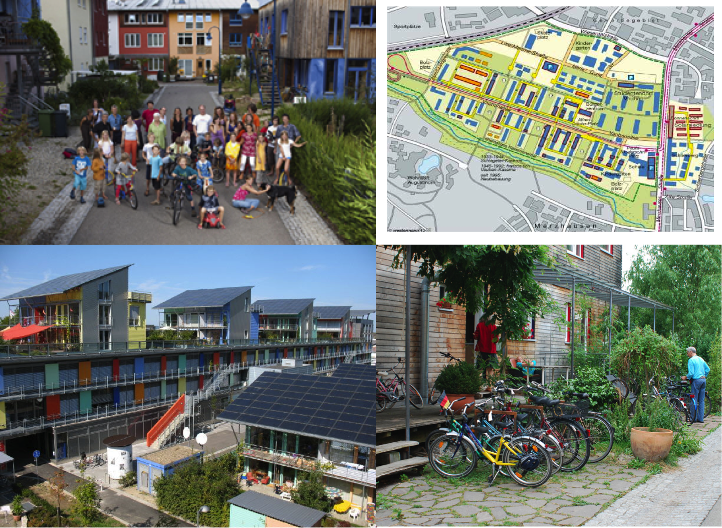 También se hablo de la planificación de estas zonas desde un inicio, donde se dijo que las mejores oportunidades para estos espacios se puede producir en lugares abandonados, como podrían ser áreas industriales o zonas militares en desuso. Un ejemplo de esto se produjo en Alemania, en un vecindario llamada Vauban, antiguamente ocupado como base militar francesa, diseñado para 5000 habitantes y 600 puestos de trabajo situado al sur de Friburgo. En donde todas las casas fueron rehabilitadas bajo estándares de ahorro energético y en cuanto al transporte o la movilidad existente en la comunidad es solucionada exclusivamente por la bicicleta. http://www.vauban.de