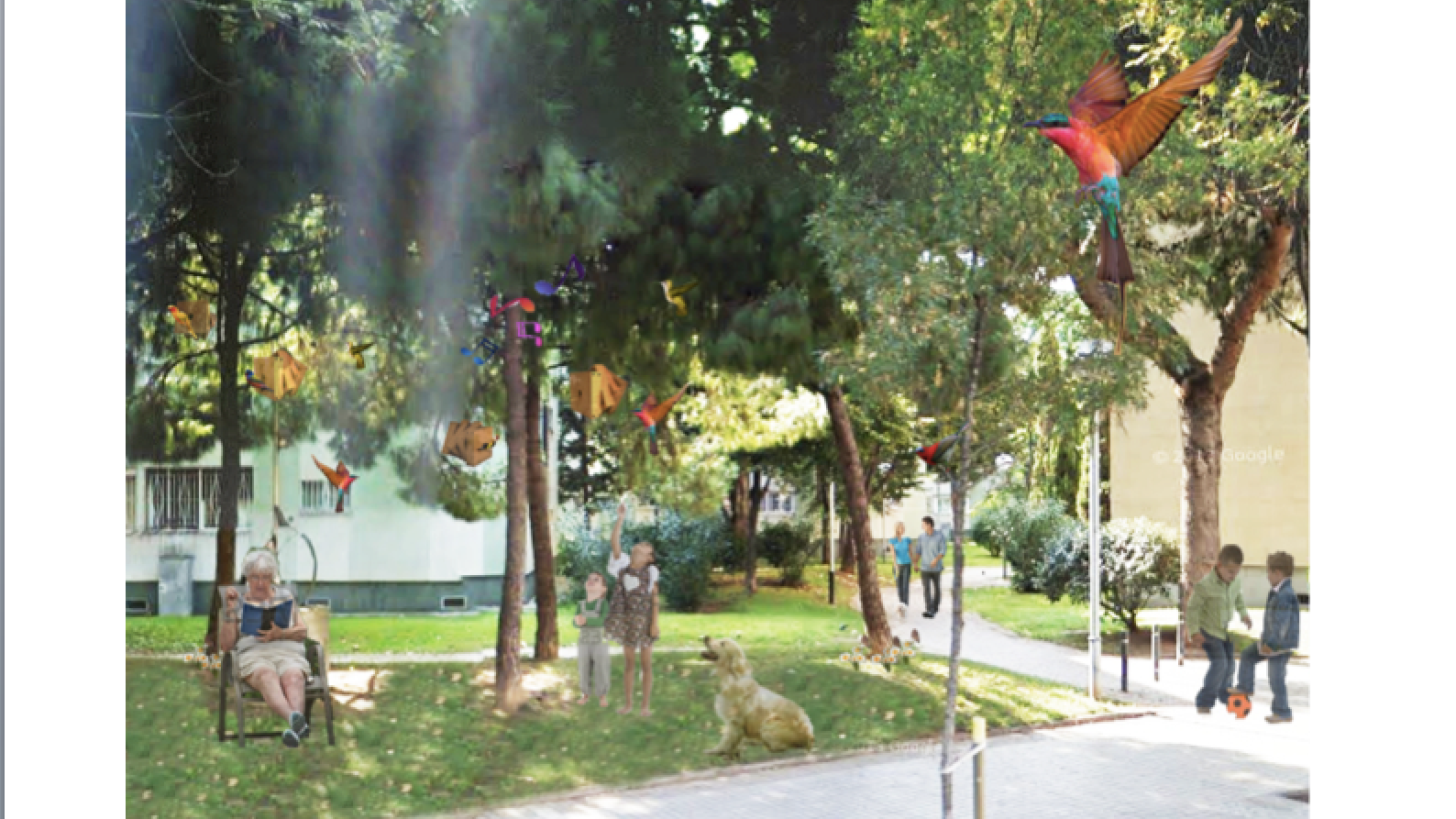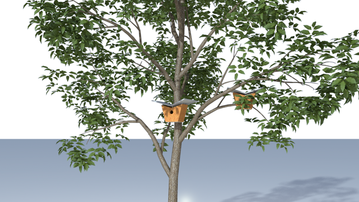 Su prototipo es instalable en arboles de las distintas áreas verdes en La Pau, que este fuera practico interesante y funcional, su prototipo permitía la ventilación natural y la auto-renovación del material del nido a través de las aberturas de la pajarera