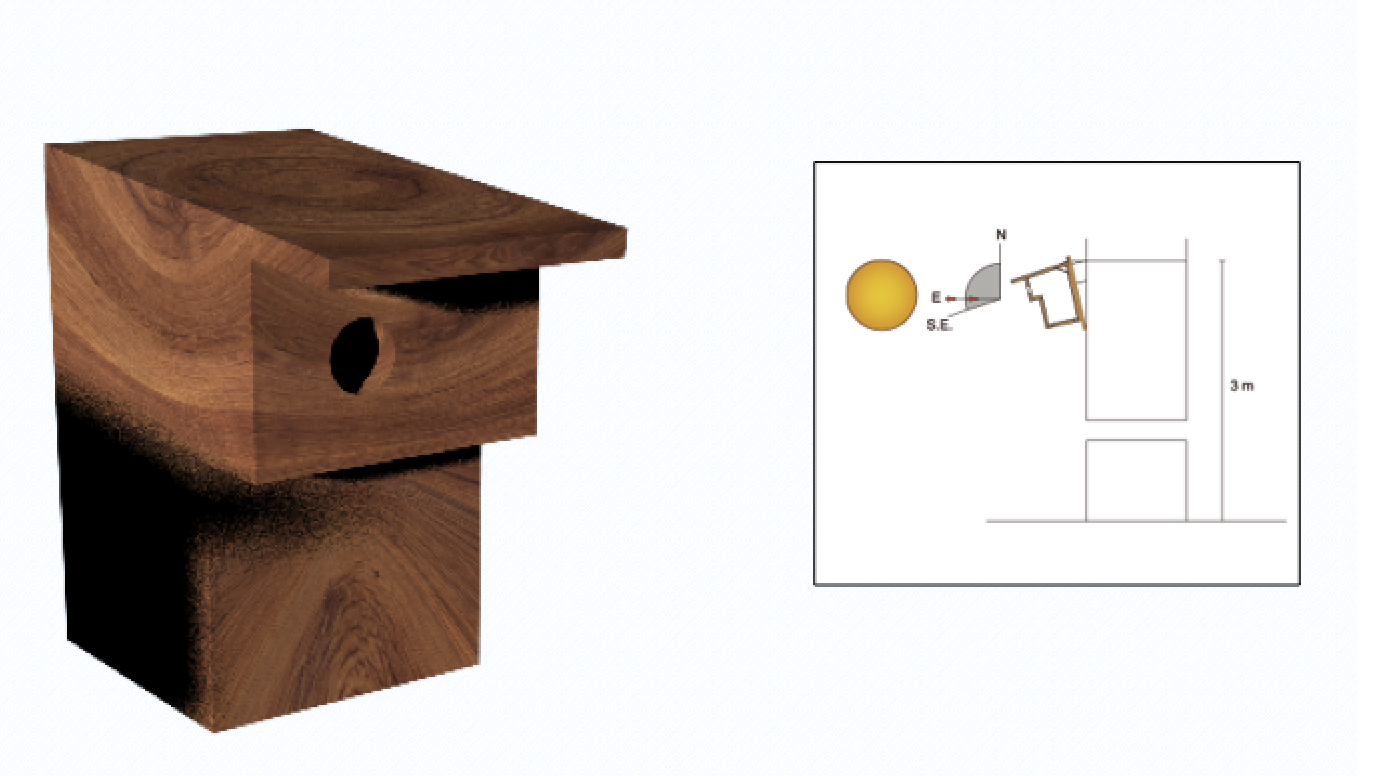 Había que tomar en cuenta la ubicación del dispositivo para saber que pájaros se encontraban en la zona, estudiar sus tamaños, para ver las dimensiones que se iban a tener que tener en cuenta, que necesitaban para su confort, y prever que se pueda realizar el mantenimiento de este dispositivo