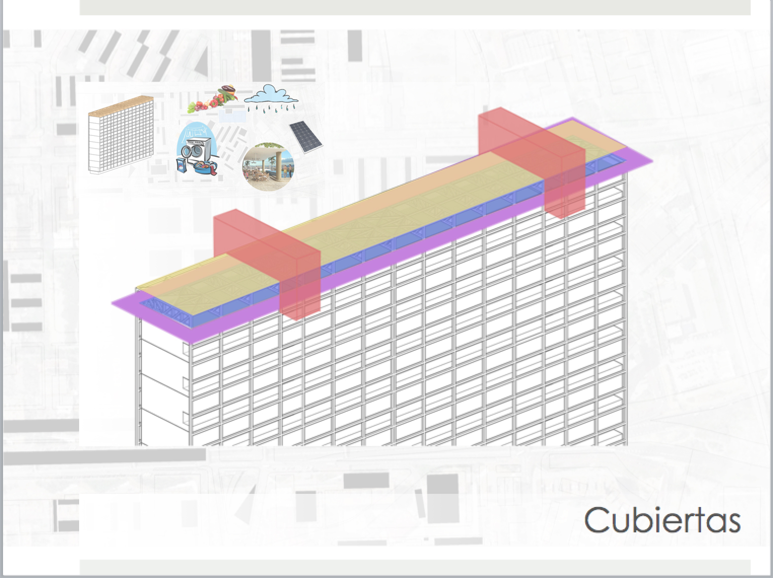 Se noto la necesidad de espacio que tienen los vecinos dentro de sus apartamentos, por lo que se propone usar espacios como las cubiertas que no están siendo utilizadas y las plazas que no se les da tanto uso, como espacio añadido para estos.